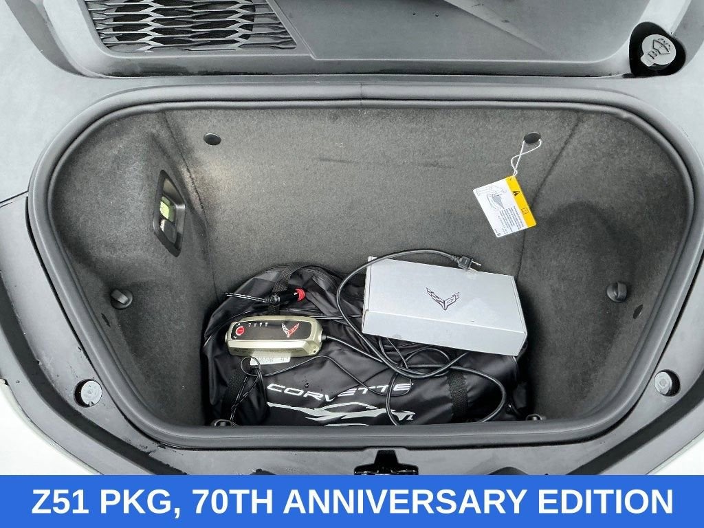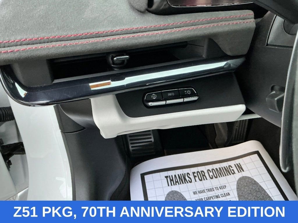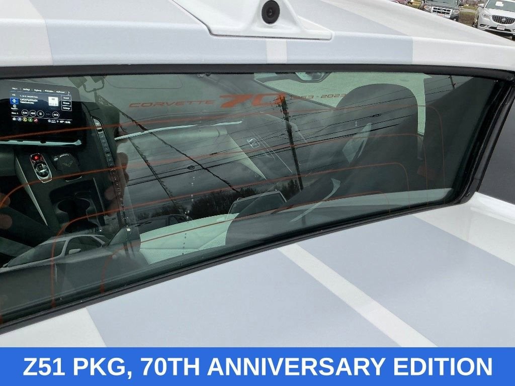 White Pearl Metallic Tricoat 2023 Chevrolet Corvette Stingray 3LT RWD 8-Speed Dual Clutch 6.2L V8 ONE OWNER, NO ACCIDENTS, FACTORY WARRANTY, HEATED & COOLED LEATHER, HEATED STEERING WHEEL, NAVIGATION, HEADS UP DISPLAY, BOSE SOUND SYSTEM, MEMORY SEATS, REAR CROSS TRAFFIC ALERT, REMOTE START, ANDROID/APPLE CARPLAY, POWER LOCKS & WINDOWS, TILT & CRUISE, KEYLESS ENTRY & START, POWER SEAT, 14 Speakers, 2 Cargo Nets, 4-Wheel Disc Brakes, 70th Anniversary Black Prem Indoor Car Cover (LPO), 70th Anniversary Special Edition, 8-Way Power Driver Seat Adjuster, 8-Way Power Passenger Seat Adjuster, ABS brakes, Air Conditioning, Alloy wheels, AM/FM radio: SiriusXM, Apple CarPlay/Android Auto, Auto-dimming door mirrors, Auto-dimming Rear-View mirror, Automatic Leveling System Headlamp Control, Automatic temperature control, Battery Protection Package, Black Custom Splash Guards (LPO), Black Exhaust Tips, Black Lug Nuts (LPO), Black Rear Fascia/Roof Storage Protector (LPO), Bose Performance Series Sound System w/14 Speakers, Brake assist, Bumpers: body-color, Carbon Flash Metallic Painted Outside Mirrors, Carbon Flash Metallic-Painted Outside Mirrors, Compass, Contoured Cargo Area Liners w/Jake Logo (LPO), Convertible HardTop, Convertible roof lining, Convertible Top w/Carbon Flash Nacelles, Custom Leather Wrapped Interior Package, Delay-off headlights, Driver door bin, Driver Power Bolster Seat Adjuster, Driver vanity mirror, Dual front impact airbags, Dual front side impact airbags, Edge Red-Painted Calipers, Electrical Theft Deterrent System, Electronic Limited-Slip Differential, Electronic Stability Control, Emergency communication system: OnStar and Chevrolet connected services capable, Four wheel independent suspension, Front anti-roll bar, Front Bucket Seats, Front Center Armrest, Front dual zone A/C, Front Lift Adjustable Height w/Memory, Front Radiator Grille Screens (LPO), Front reading lights, Fully automatic headlights, Garage door transmitter, Glass rear window, GT2 Bucket Seats, HD Front & Rear Vision Cameras, HD Radio, Head-Up Display, Heads-Up Display, Heated & Vented Driver & Passenger Seats, Heated door mirrors, Heated front seats, Heated Steering Wheel, Heated steering wheel, Heavy-Duty Cooling System, Illuminated entry, Integrated roll-over protection, Leather Shift Knob, Leather steering wheel, Low tire pressure warning, Memory Driver & Passenger Convenience Package, Memory seat, Napa Lthr Seating Surfaces w/Perforated Inserts, Navigation System, Occupant sensing airbag, Outside temperature display, Overhead console, Panic alarm, Passenger door bin, Passenger Power Bolster Seat Adjuster, Passenger vanity mirror, Performance Data & Video Recorder, Performance Exhaust w/Stainless-Steel Tips, Performance Rear Axle Ratio, Performance Traction Management, Power convertible roof, Power door mirrors, Power Driver Lumbar Control Seat Adjuster, Power driver seat, Power Passenger Lumbar Control Seat Adjuster, Power passenger seat, Power steering, Power windows, Power-Adjustable Outside Heated Mirrors, Preferred Equipment Group 3LT, Premium audio system: Chevrolet Infotainment 3 Premium, Radio data system, Radio: Chevrolet Infotainment 3 Premium System, Rear anti-roll bar, Rear Cross Traffic Alert, Rear window defroster, Rear Z51 Spoiler, Remote keyless entry, Satin Matrix Gray Full Length Dual Race Stripes, Security system, Side Blind Zone Alert, SiriusXM Radio, Speed control, Speed-sensing steering, Sport steering wheel, Stealth Interior Trim Package, Steering wheel memory, Steering wheel mounted audio controls, Sueded Microfiber-Wrapped Steering Wheel, Sueded Microfiber-Wrapped Upper Interior Trim Pkg, Tachometer, Telescoping steering wheel, Tilt steering wheel, Torch Red Seat Belt Color, Traction control, Trip computer, Turn signal indicator mirrors, Universal Home Remote, Variably intermittent wipers, Vehicle Inclination Theft Deterrent Sensor, Vehicle Interior Movement Theft De